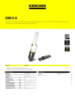Besonders flexibel mit Wechselakku: Der Handstaubsauger CVH 2-4 ist stets bereit und schnell zur Hand für viele Reinigungsaufgaben in Küche, Wohn- und Schlafbereich oder im Autoinnenraum. Er entfernt mühelos Schmutz wie Krümel, Haare und Staub. Die 2-in-1-Fugendüse sorgt auf sensiblen Oberflächen ebenso wie an schwer erreichbaren Stellen für Sauberkeit. Leicht und mit kompaktem Design ermöglicht der Sauger eine ergonomische und hygienische Bedienung ohne Schmutzkontakt. Für saubere Abluft sorgt ein 2-stufiges Filtersystem. 4 V Kärcher Battery Power-Wechselakku nicht im Lieferumfang enthalten. Kompatibel mit allen 4 V Kärcher Battery Power-Geräten.