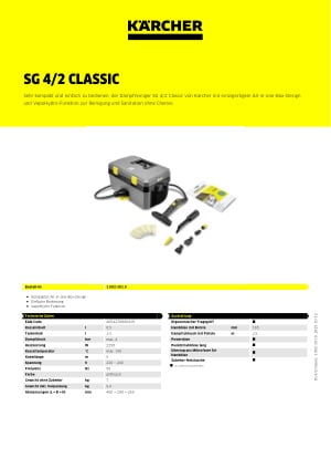 Dank des einzigartigen All-in-one-Box-Designs sehr kompakt, robust und langlebig, dazu umfangreich ausgestattet und besonders einfach zu bedienen: Der Dampfreiniger SG 4/2 Classic überzeugt mit exzellenten Reinigungsergebnissen, einem hervorragenden Preis-Leistungs-Verhältnis und maximaler Wirtschaftlichkeit. Das gerade mal 7,5 Kilogramm leichte Gerät ist der kompakteste professionelle Dampfreiniger seiner Klasse, in nur 3 Minuten einsatzbereit und bietet mit 4 Bar Dampfdruck mehr als ausreichend Reserven zur gründlichen Reinigung und Sanitation ganz ohne den Einsatz chemischer Hilfsmittel. Theken, Schankanlagen, Fliesen, Kochfelder, Öfen und vieles mehr werden bis in die kleinste Ritze makellos sauber – ganz unabhängig von ihrem Verschmutzungsgrad. In besonders hartnäckigen Fällen hilft die zuschaltbare VapoHydro-Funktion mit Heißwasser und beseitigt wirksam auch starke Verschmutzungen und Fette, der Wassertank ist entnehmbar und jederzeit befüllbar. Mitgelieferte Zubehöre wie Dampfschlauch, Handdüse, Punktstrahldüse, Powerdüse, Rundbürste, Flachbürste, Dampfschaber und Mikrofaser-Überzug sind alle direkt im Gerät untergebracht – optional ist auch eine Bodendüse erhältlich.