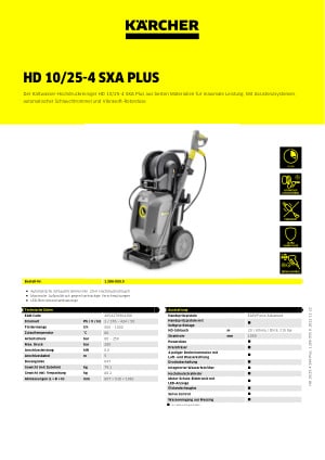Der Kaltwasser-Hochdruckreiniger HD 10/25-4 SXA Plus ist für höchste Ansprüche an Qualität und Ergonomie geschaffen. Die EASY!Force Advanced-Hochdruckpistole reduziert die Haltekraft auf null. Druck und Wassermenge sind am Servo-Control-Regler zwischen Lanze und Pistole einstellbar. So kann durch Druckreduktion auf empfindliche Untergründe reagiert werden – ohne Düsenwechsel und Einstellung am Gerät. Die Vibrasoft-Rotordüse dämpft Geräusche und Vibrationen. Assistenzsysteme und LED-Statusanzeige geben Orientierung. Das Superklassegerät besticht durch ausgezeichnete Verarbeitung und beste Materialien. Im Kern sitzt eine robuste Taumelscheibenpumpe mit Edelstahlkolben und Messing-Zylinderkopf. Der langsam laufende 4-polige Motor mit Wasser- und Luftkühlung ist langlebig und leistungsstark. Integrierte Aluminium-Rahmenträger bilden ein leichtes Chassis, geeignet zur Kranverladung. Die stehende Bauweise mit vertikaler Motor-Pumpen-Einheit sorgt für ein kompaktes Design und Mobilität. Zudem sind ein Ultra Guard HD-Schlauch mit Beschichtung aus Teflon® und reichlich Zubehörverwahrung verbaut, sowie eine automatische Schlauchtrommel zum Auf- und Abrollen bis zu 45° – sogar unter Druck.