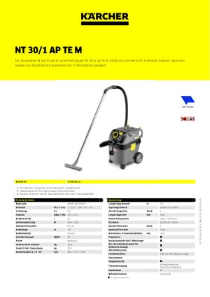 Die auf Baustellen und in Werkstätten anfallenden Feinstäube aller Art beseitigt der NT 30/1 Ap Te M zuverlässig und sicher. Der kompakte Sauger mit halbautomatischer Filterabreinigung verfügt über einen feuchtigkeitsunempfindlichen Flachfaltenfilter „Wet & Dry“ aus PES-Faser-Material zum Saugen von Feinstaub, Flüssigkeiten und Grobschmutz der Staubklasse M und garantiert eine Filtrationseffizienz von 99,9 Prozent. Die integrierte Gerätesteckdose mit Automatikanlauf sowie das komplette Antistatiksystem (mit leitendem Zubehör) prädestinieren den Sauger für die Direktabsaugung von stauberzeugenden Elektrowerkzeugen. Die Bedienung des Geräts ist ausgesprochen einfach, da die wichtigsten Einstellungen über einen zentralen Drehschalter vorgenommen werden. Durch die erstklassige Saugleistung werden verschiedenste Einsatzbereiche ermöglicht: Schleifarbeiten, Montage- und Installationsarbeiten, Beseitigung von Flüssigkeiten oder Absaugen von Maschinen und Anlagen.