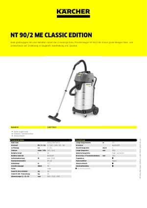 Ob Staub, Grobschmutz oder Flüssigkeiten: Der saugstarke NT 90/2 Me Classic bietet einen extra großzügigen 90-Liter-Behälter zur Aufnahme großer Schmutzmengen unterschiedlichster Art und zeichnet sich durch einfache Handhabung aus. Der hochwertige und stablile 2-motorige Nass-/Trockensauger ist mit serienmäßigem Schubbügel und extra stabilem Fahrwerk mit Metalllenkrollen versehen. Zudem ist das Gerät mit einem leistungsfähigen Patronenfilter und einem praktischem Ablassschlauch bestückt.