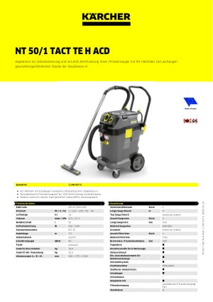 Der große 50-Liter-Behälter mit verstellbarem Schubbügel und Ablassschlauch macht den NT 50/1 Tact Te H ACD zur idealen Lösung für die sichere Beseitigung gesundheitsgefährdender und krebserregender Stäube – besonders im industriellen Umfeld. Das Gerät ist für alle Stäube der Staubklasse H – inklusive Asbeststaub – geprüft und zugelassen und schützt so Anwender und Umfeld zuverlässig. Zudem ist es gemäß IEC 60335-2-69:2021 nach der ACD-Norm (Appliance for the Pickup of Combustible Dust) für das Aufsaugen brennbarer Stäube zertifiziert. Mit dem abreinigbaren Flachfaltenfilter Safety/HEPA lassen sich gefährliche Stäube sicher mit Sicherheitsfiltersack oder PE-Entsorgungssack aufnehmen; große Mengen weniger gefährlicher Stäube können direkt in den Behälter gesaugt werden. Dabei sorgt die sensorgesteuerte Filterabreinigung Tact für konstant hohe Saugleistung durch stets saubere Filter. Eine integrierte Gerätesteckdose mit Automatikanlauf sowie das vollständige Antistatiksystem mit leitfähigem Zubehör runden das Profigerät ab.