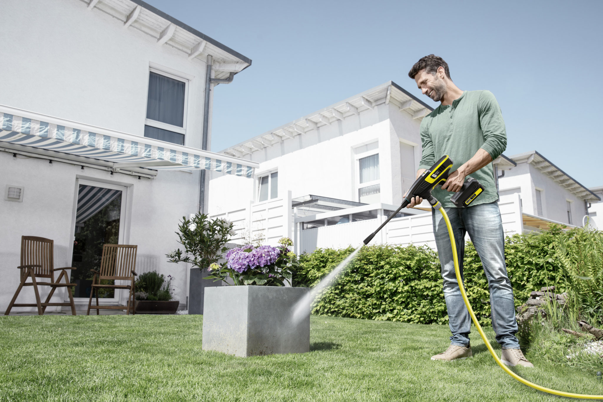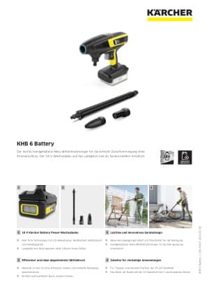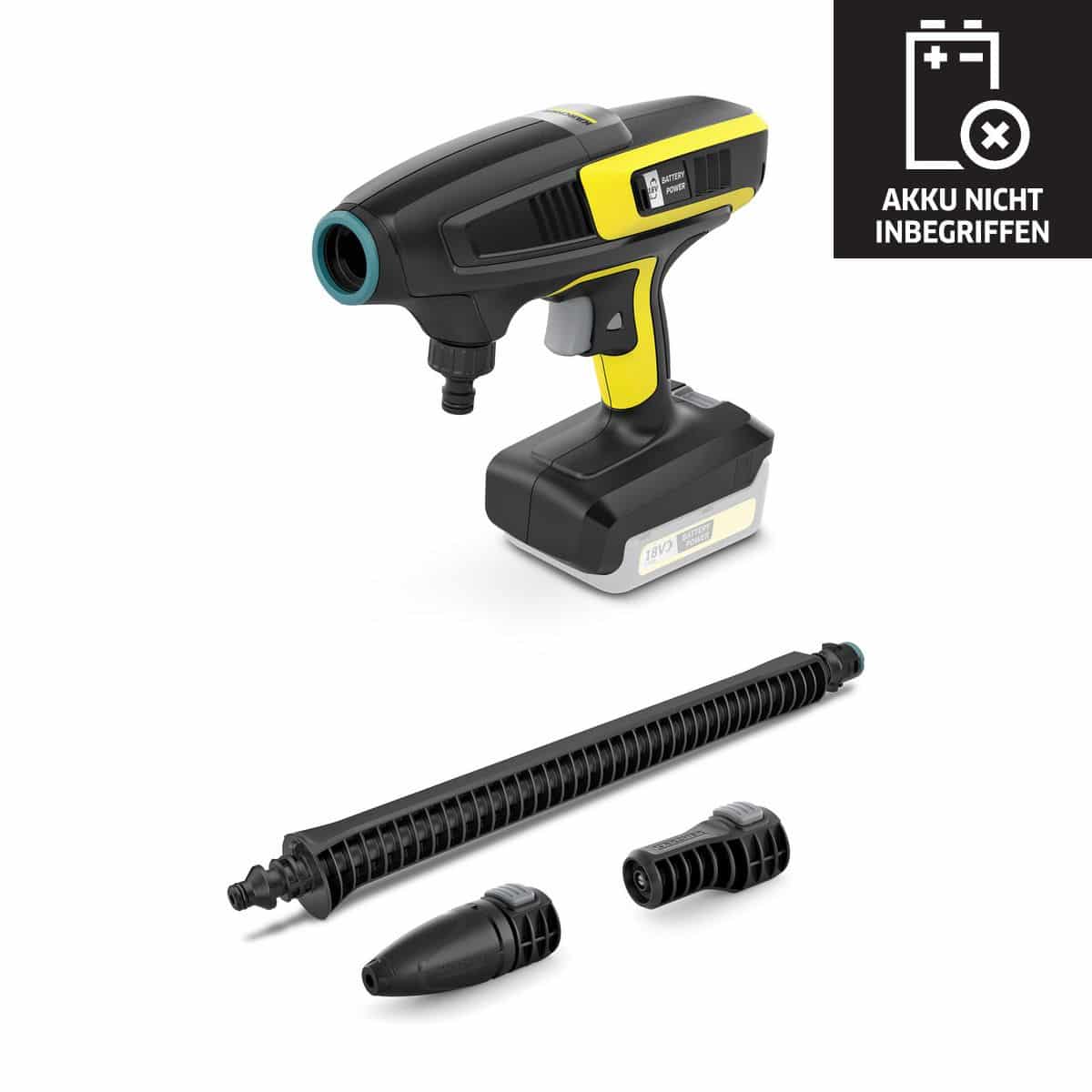 Kein Stromanschluss? Kein Problem! Der leichte handgehaltene Akku-Mitteldruckreiniger KHB 6 Battery der Kärcher 18 V Battery-Plattform reinigt unabhängig vom Stromnetz praktisch alles rund ums Haus. Einfach den Schlauch anschliessen und los geht’s. Mit der schonenden Flachstrahldüse werden Gartenmöbel, Spielzeug und vieles mehr schnell von lästigem Schmutz befreit. Die Blumenkübel sind mit Blütenstaub und Erde befleckt? Da muss die effiziente Rotordüse ran, mit der auch stärkere Verschmutzungen mühelos entfernt werden. Beide Düsen sind im Lieferumfang enthalten. Der langlebige und leistungsstarke Lithium-Ionen-Wechselakku (18 V / 2,4 Ah) und das Ladegerät sind als Sonderzubehör erhältlich. Der langlebige und leistungsstarke Lithium-Ionen-Wechselakku kann in allen Akkugeräten der 18 V Kärcher Battery Power-Plattform eingesetzt werden. Das LCD-Display des Akkus zeigt dank innovativer Real Time Technology die verbleibende Kapazität an, beim Arbeiten, Laden und Lagern. Das breite Zubehörangebot macht den KHB 6 Battery noch vielseitiger. So sind beispielsweise eine Schaumdüse, eine Waschbürste und ein Ansaugschlauch, um Wasser aus alternativen Quellen zu nutzen, zusätzlich erhältlich. Bitte beachten Sie bei Ihrer Bestellung, dass bei dieser Geräteversion der kraftvolle Kärcher Battery Power-Akku sowie das zugehörige Ladegerät separat zu bestellen sind.