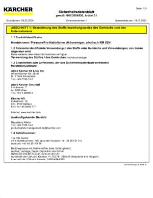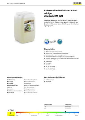 Vielseitig zur Beseitigung von Ölen, Fetten und organischen Verschmutzungen mit Hochdruckreinigern einsetzbarer, Natürlicher Aktivreiniger RM 82N von Kärcher. Gelistet in der Betriebsmittelliste für die ökologische Produktion in Deutschland (FiBL), basiert der alkalische Reiniger zu über 99 Prozent auf natürlichen Inhaltsstoffen. Die enthaltenden Tenside werden unter anderem aus Weizenkleie und Mais gewonnen und sind vollständig biologisch abbaubar. Ob in der (Bio-)Landwirtschaft oder im Transportgewerbe, ob in der Lebensmittelindustrie, auf Baustellen oder in Werkstätten – überall, wo Maschinen, Fahrzeuge, Traktoren, Kisten, Fässer, Kühlräume, Böden oder auch Planen und Transportbänder zu reinigen sind, überzeugt der nachhaltige und natürliche Aktivreiniger mit höchster Reinigungskraft. Dabei ist er frei von Silikonen, Duft- und Farbstoffen, abscheiderfreundlich und äußerst materialschonend – dank enthaltenem Korrosionsschutz auch bei Metallen und lackierten Flächen. Dazu entwickelt PressurePro Natürlicher Aktivreiniger, alkalisch RM 82N bereits bei niedrigen Wassertemperaturen eine hohe Reinigungskraft und ist mit Heißwasser-Hochdruckreinigern bei bis zu 90 °C einsetzbar.